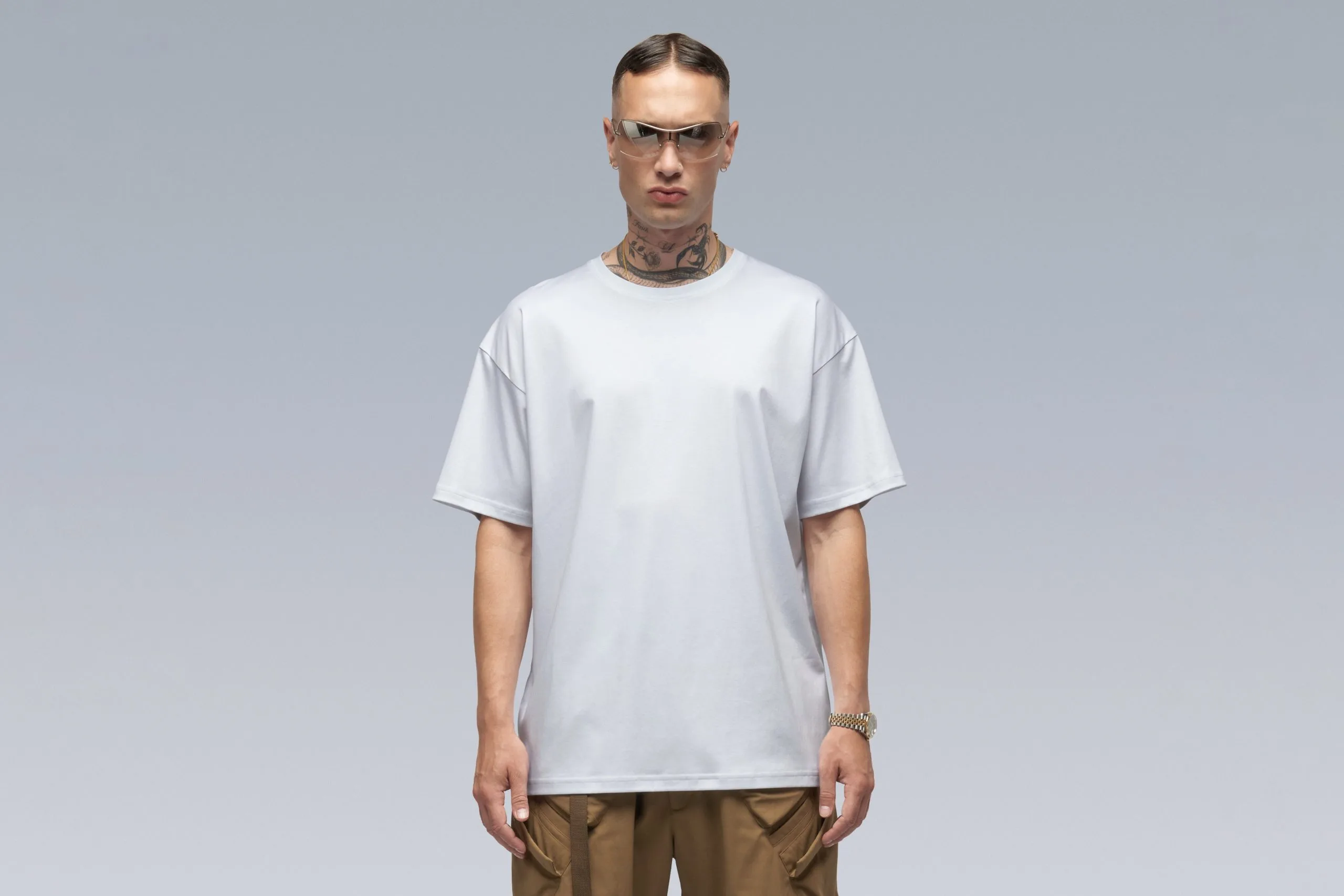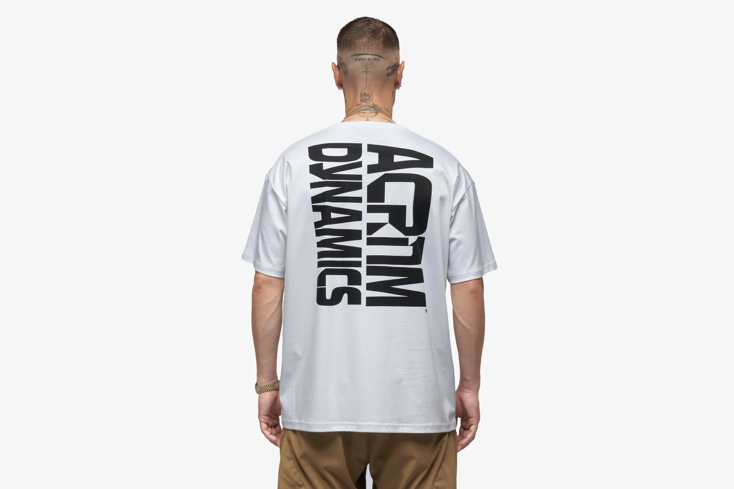 Acronym drop B lands at HANON proving once again its futuristic function first design & high quality construction is unlike anything else. The S24-PR-A is a 100% mercerized cotton short sleeve T-shirt that features a screen-printed typeface graphic designed by David Rudnick on the back.