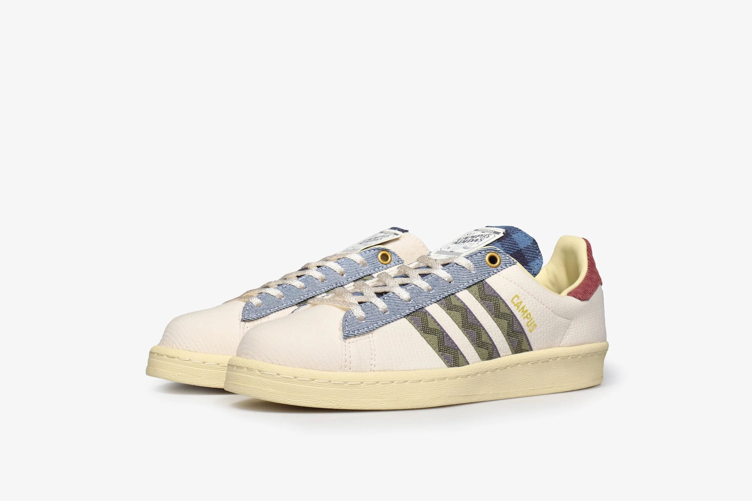 Court-inspired, street-admired. Give a nod to old-school ballplayers and their style in these classic adidas Campus 80s Shoes. This pair takes inspiration from the city of Los Angeles, particularly the flea markets that are host to a range of brilliant garments and fabrics. Denim, corduroy and check are applied in patches to represent the diversity of the stalls.Â