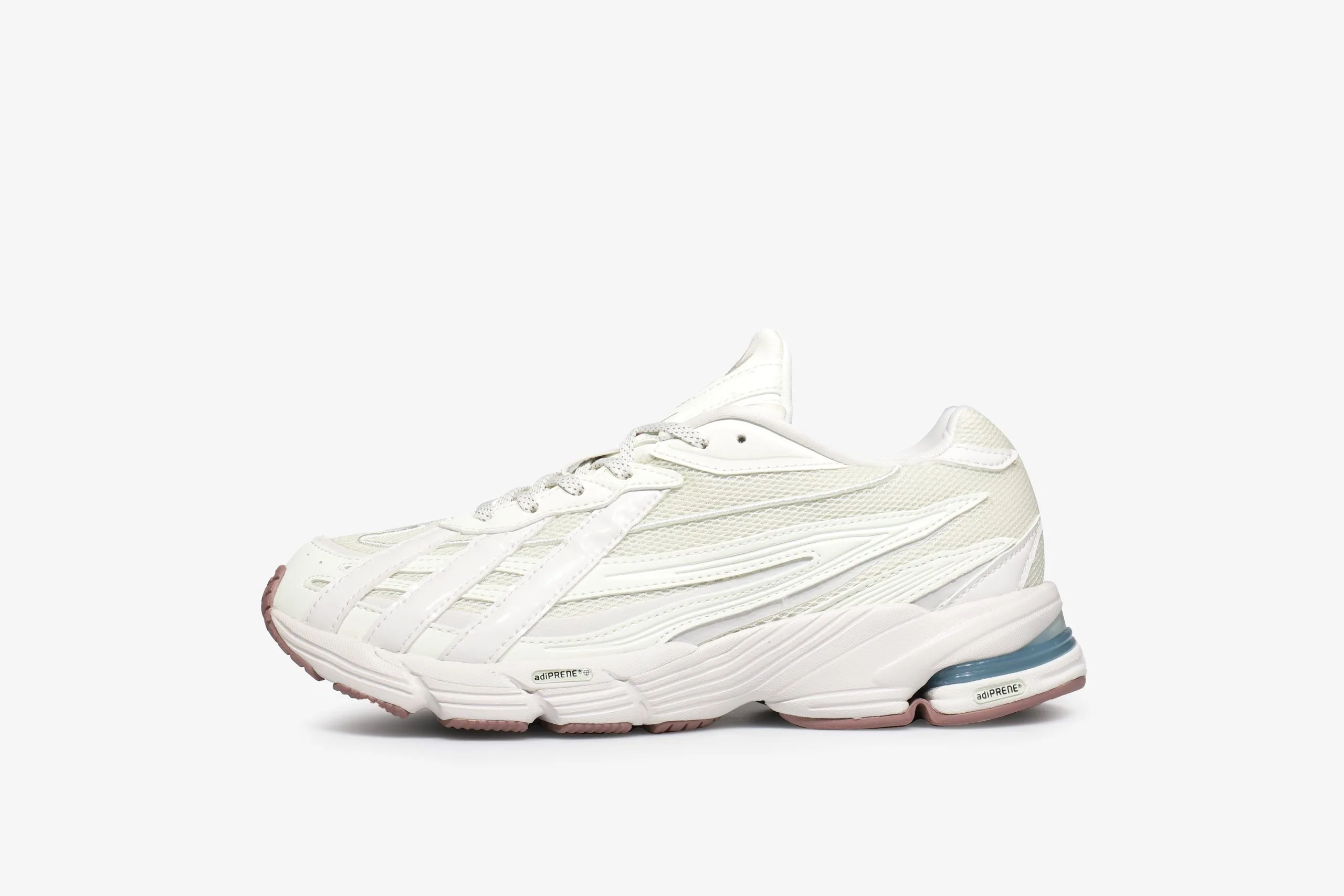 The Orketro Shoes look to lightweight ’90s running shoes and brutalism for design inspiration. This confluence of references combines to push the classic running silhouette in a new, futuristic direction. The asymmetrical design is crafted from a mix of mesh and suede with metallic leather details and rests on a premium rubber outsole. The shoes are signed off with Trefoil and Orketro branding on the tongue.