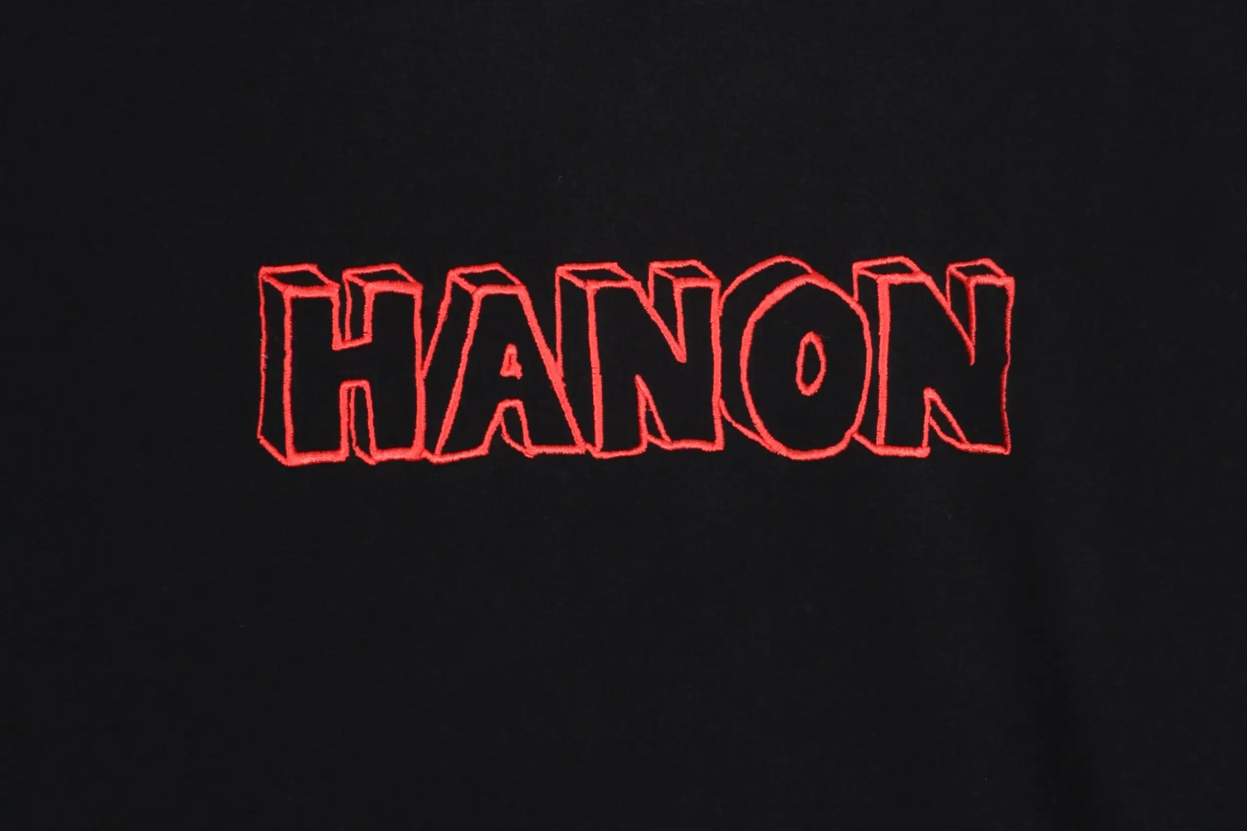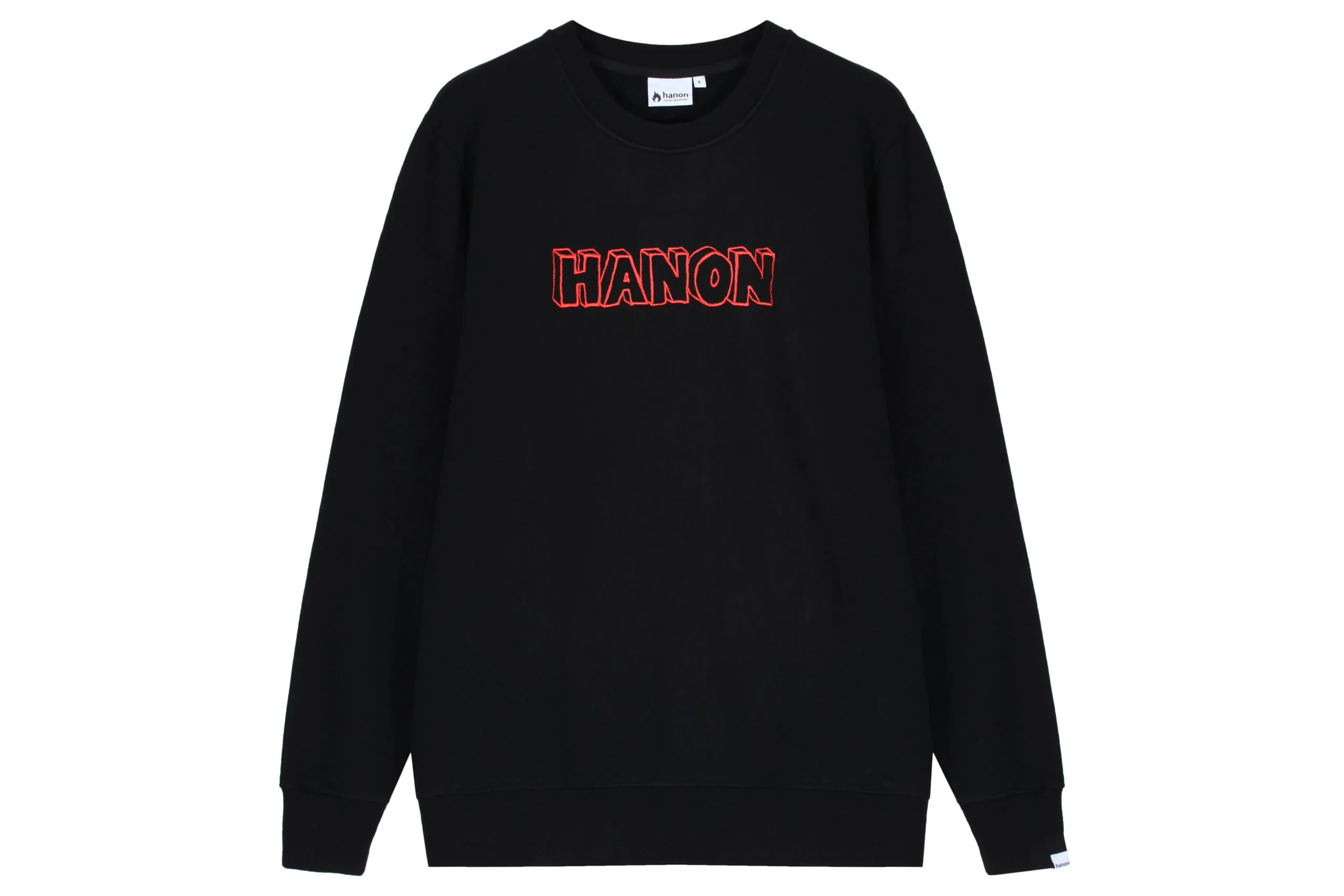 For Autumn/Winter ’18 our HANON collection returns, comprised of staples such as the Flame Badge series across t-shirts, sweats and hoods. Our Woven Shirt program also makes a welcome return with a distinctly autumnal palette, as well as a new range of graphics offered on a fresh selection of colours for the season. Here we have the HANON 3D Outline Sweatshirt in Black with an embroidered graphic om the front. A woven HANON label on the cuff completes matters.