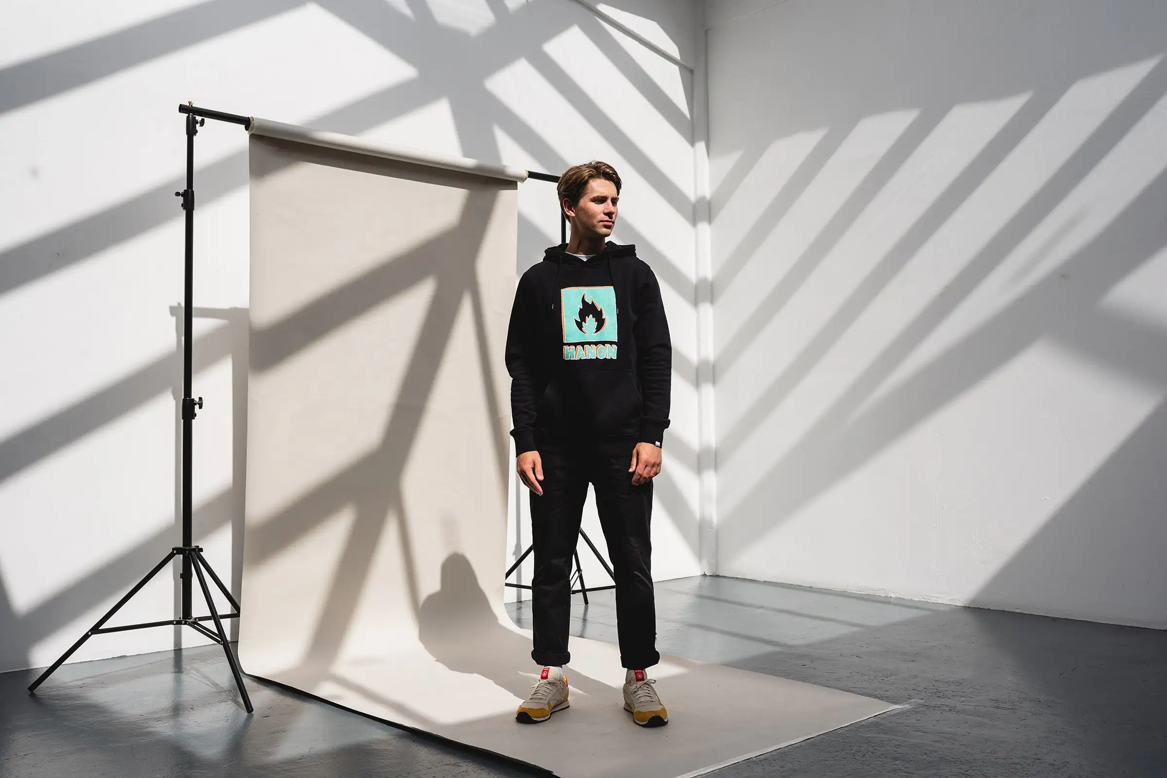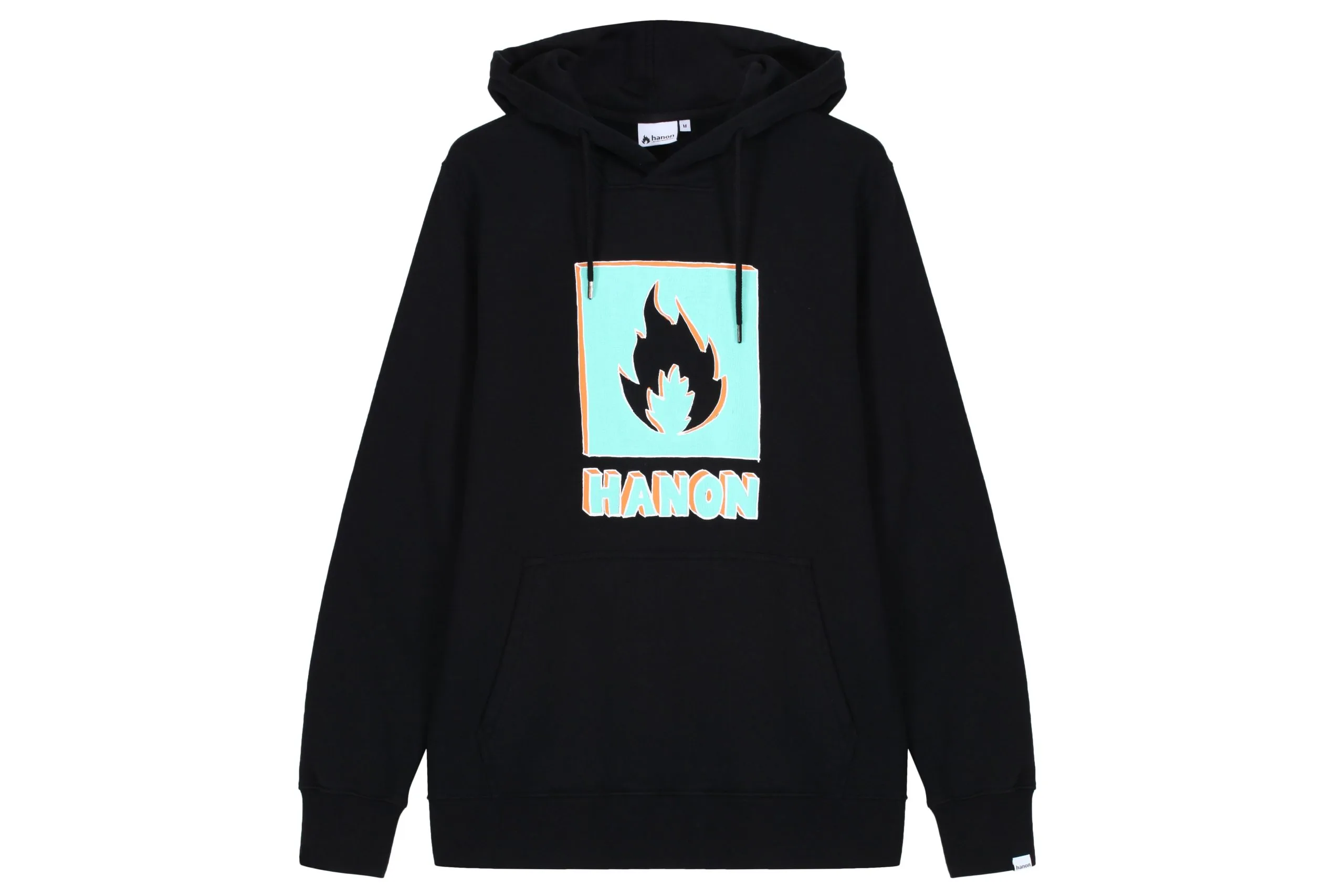 For Autumn/Winter ’18 our HANON collection returns, comprised of staples such as the Flame Badge series across t-shirts, sweats and hoods. Our Woven Shirt program also makes a welcome return with a distinctly autumnal palette, as well as a new range of graphics offered on a fresh selection of colours for the season. Here we have the HANON Crayon Shade Box Logo Hooded Sweatshirt in Raf Blue with a printed graphic on the front. A woven HANON label on the cuff completes matters.