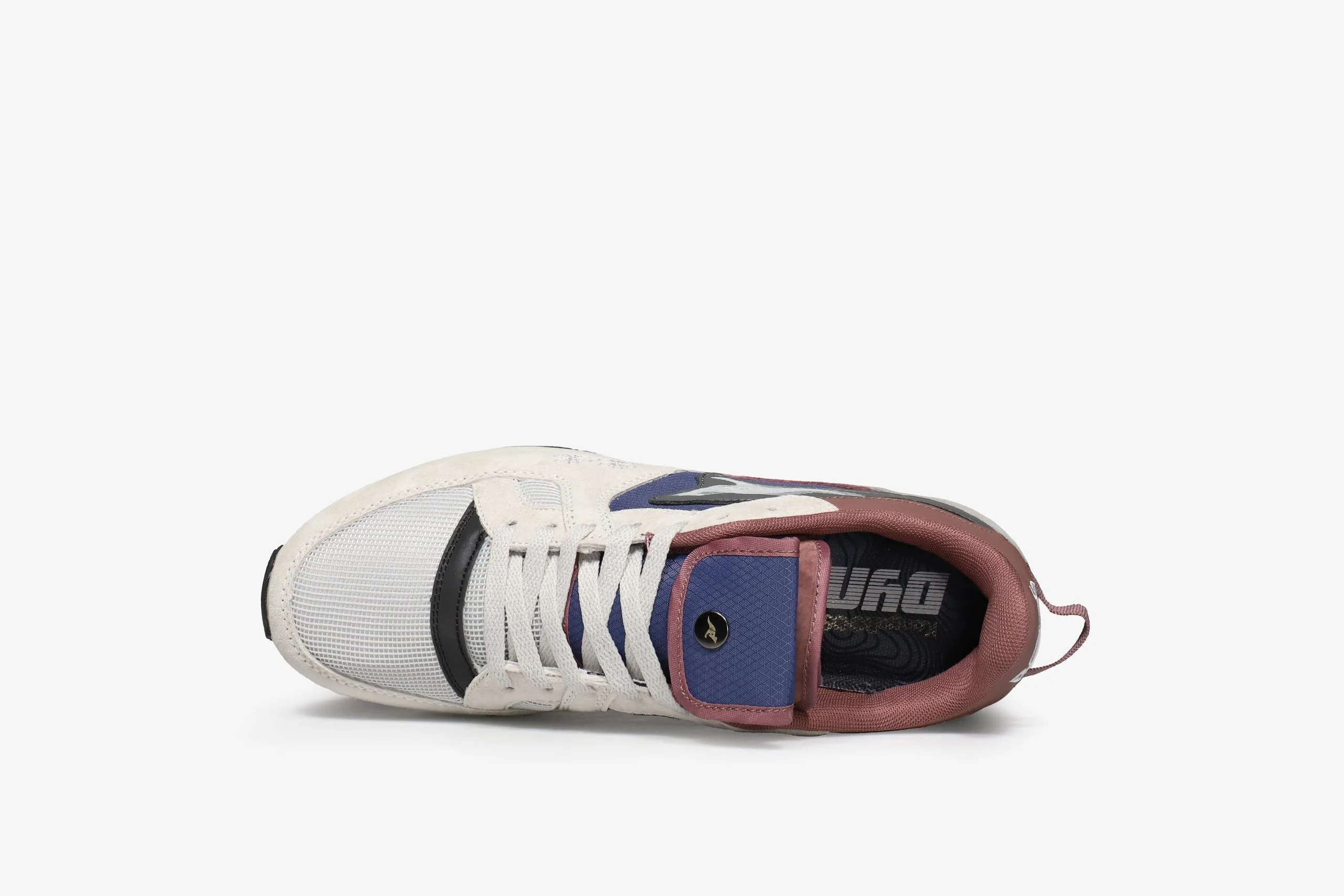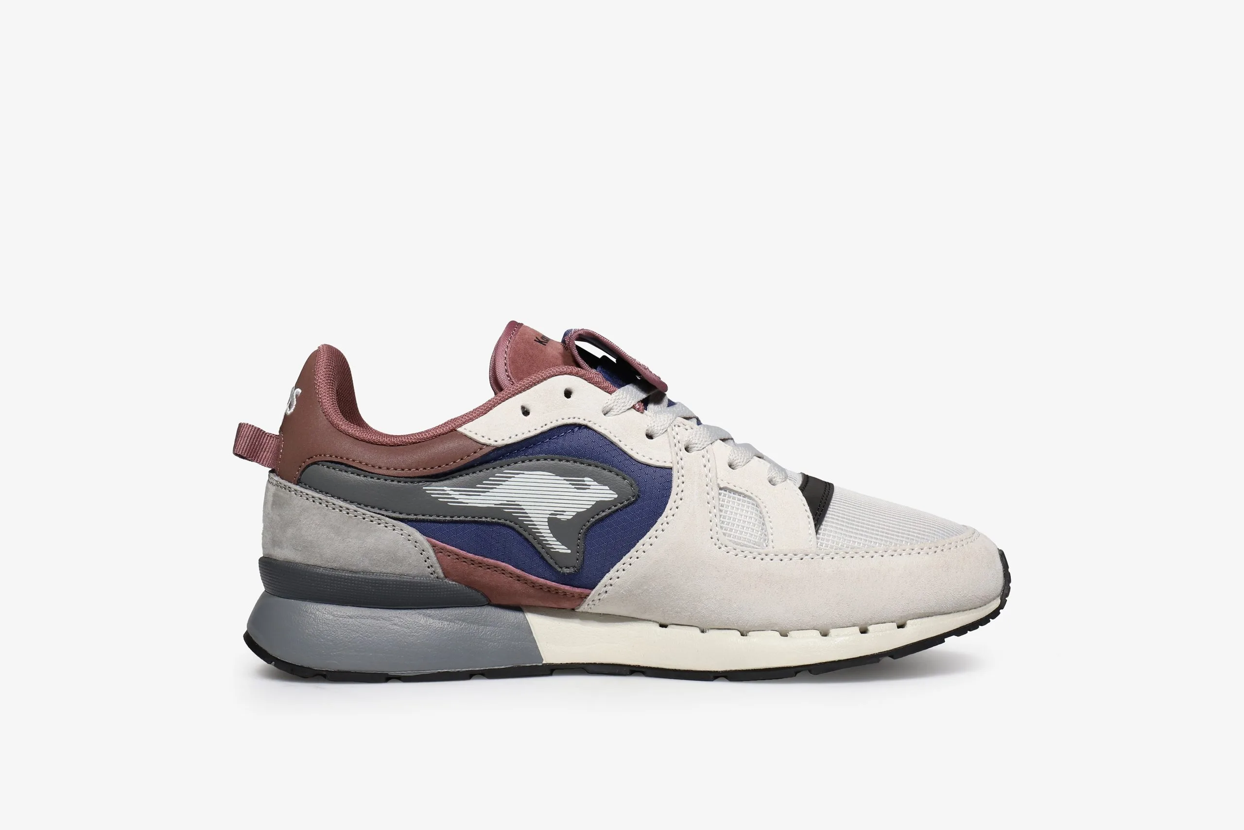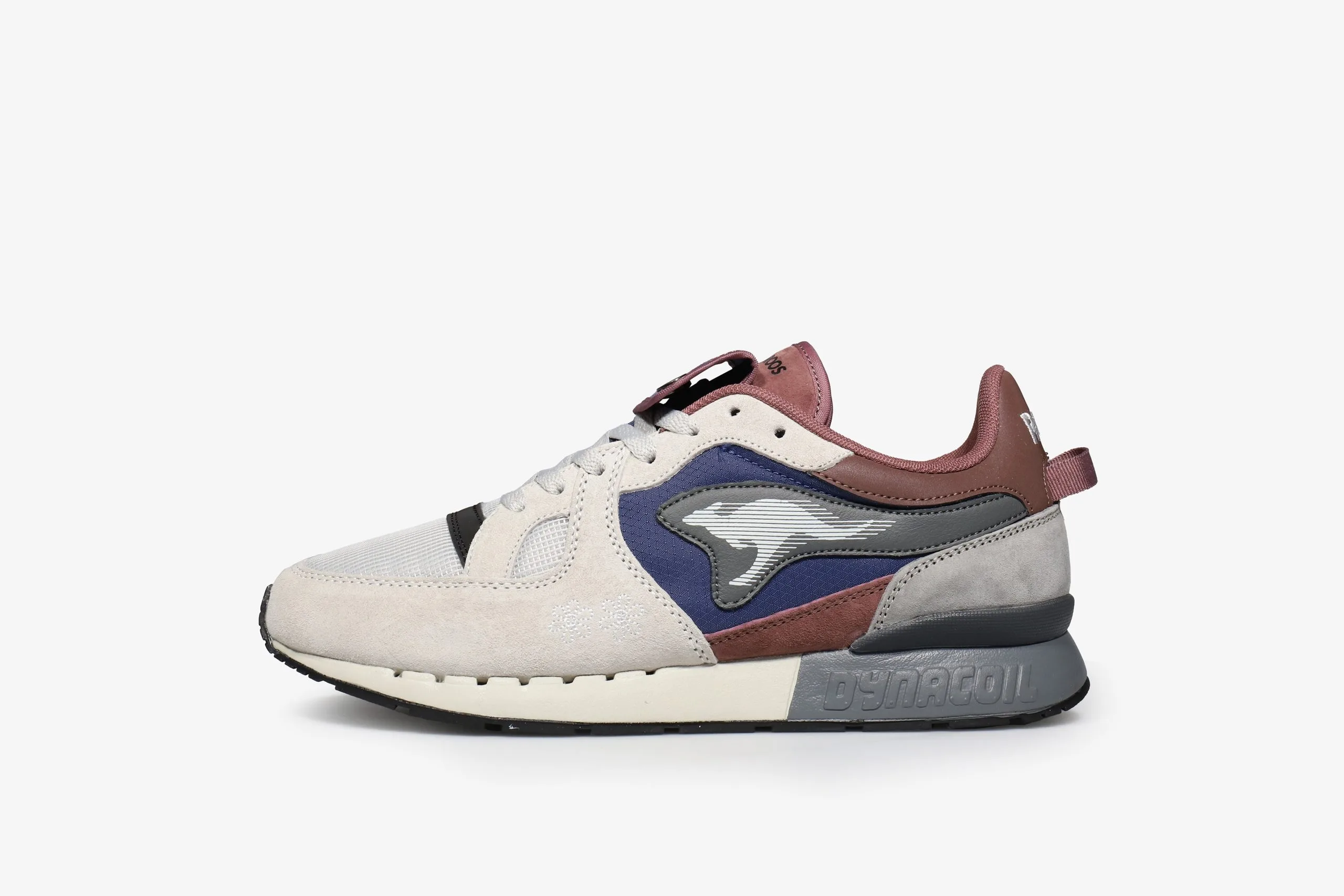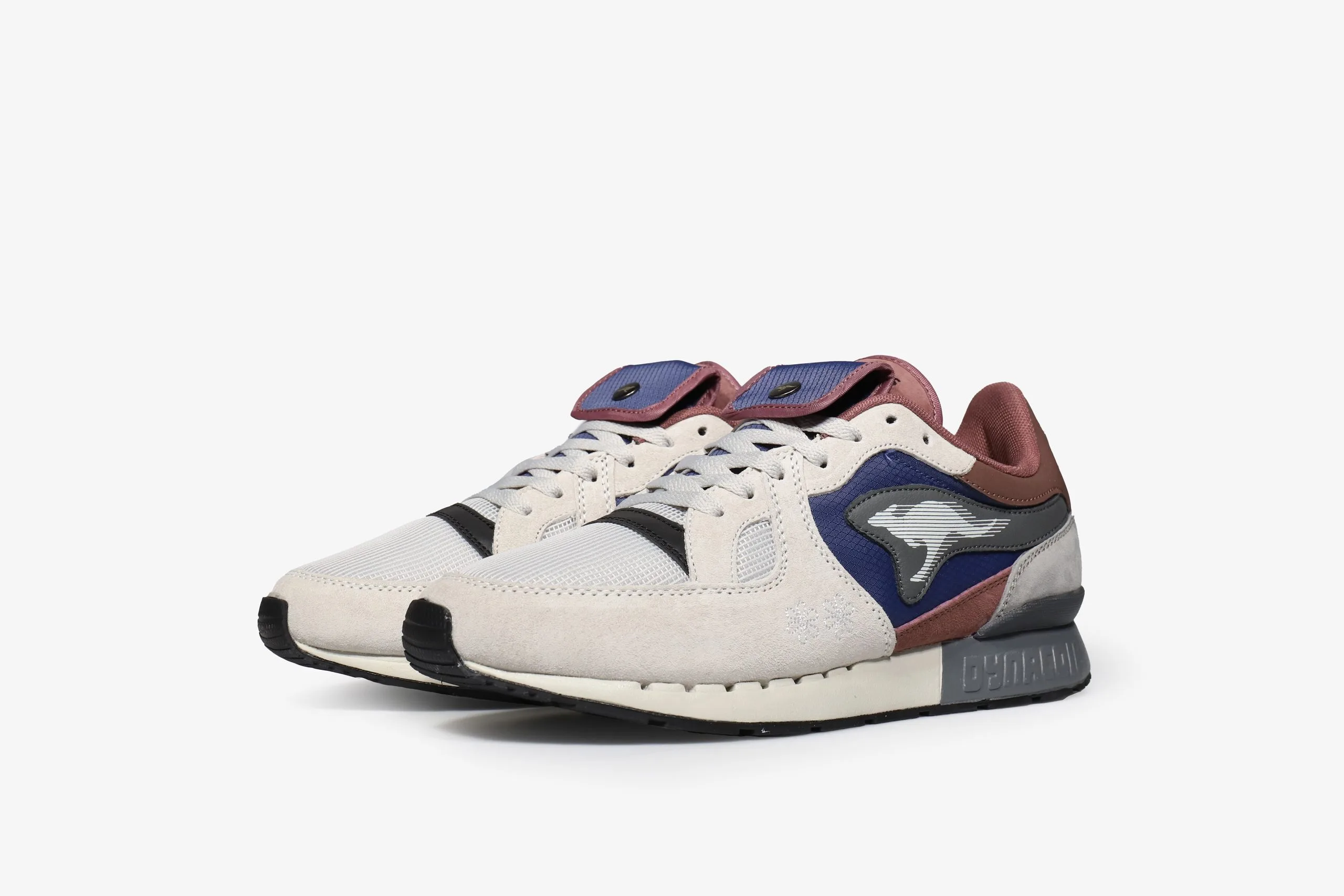 Along side their focus on high comfort levels and incorporating premium materials, KangaROOS have always applied functionality into their sneaker design and this Coil R1 Gorp is no exception. The mesh, suede & synthetic upper comes predominantly in a grey and burgundy colourway with blue at the side panels that breaks up the form. In addition to the interior secret tongue pocket there is a button down stash pocket placed above the tongue for added storage space. Below foot the DYNACOIL cushioning system offers unbound comfort and support.