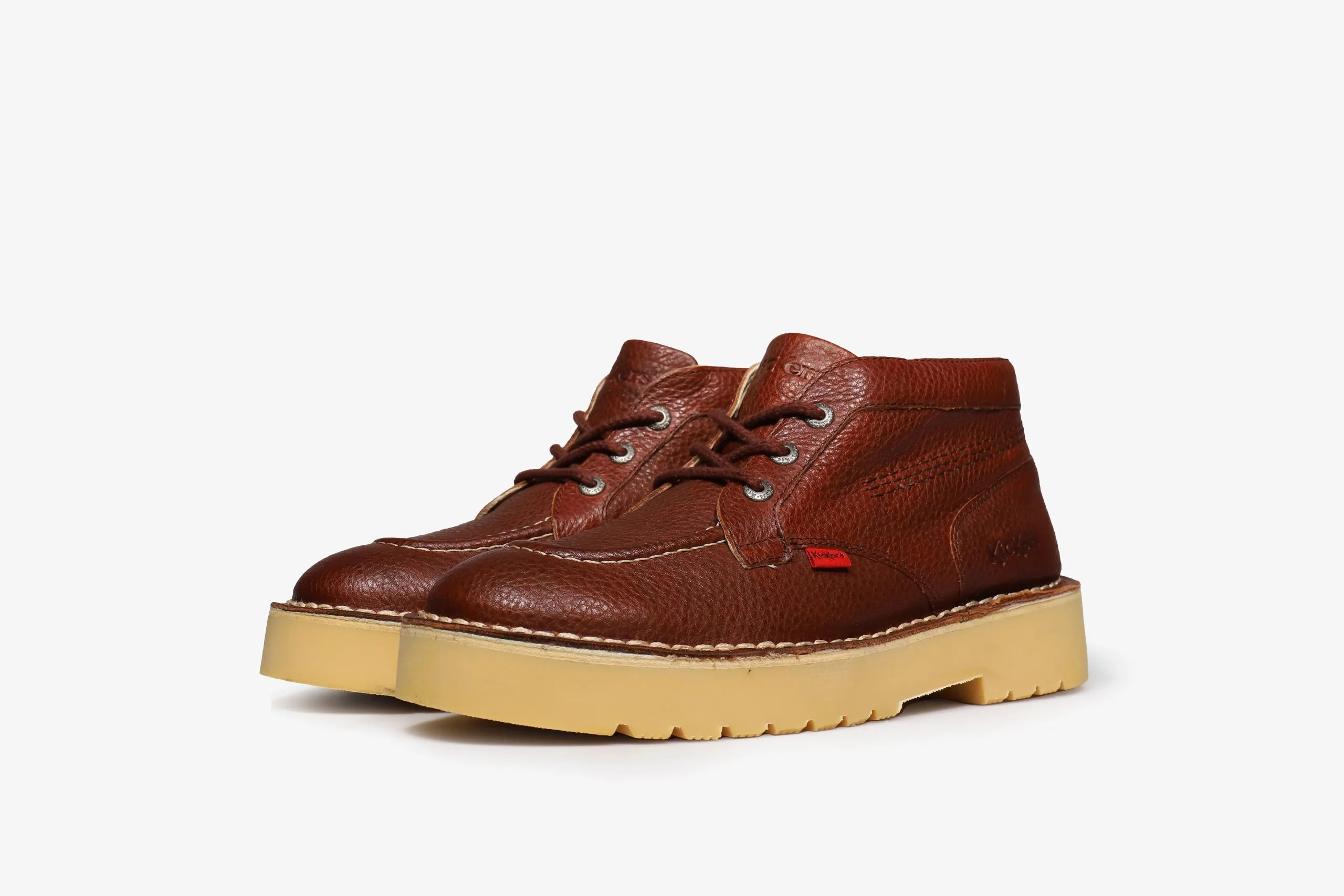 “a powerful boot destined for your everyday shoe collection.” The Daltrey Chuk features a classic chukka shape with moc toe apron. Equipped with all of the iconic Kickers features like the triple stitching, signature red and green tabs and debossed branding. The chunky sole unit is not only durable but provides total support as well as everyday comfort.