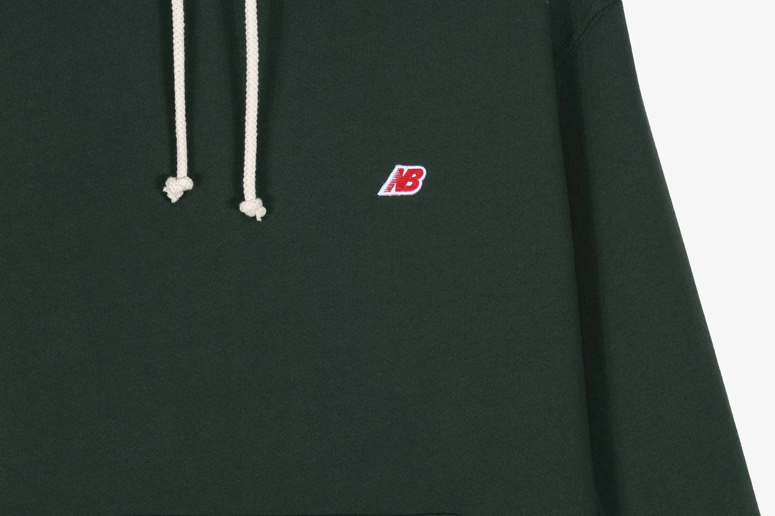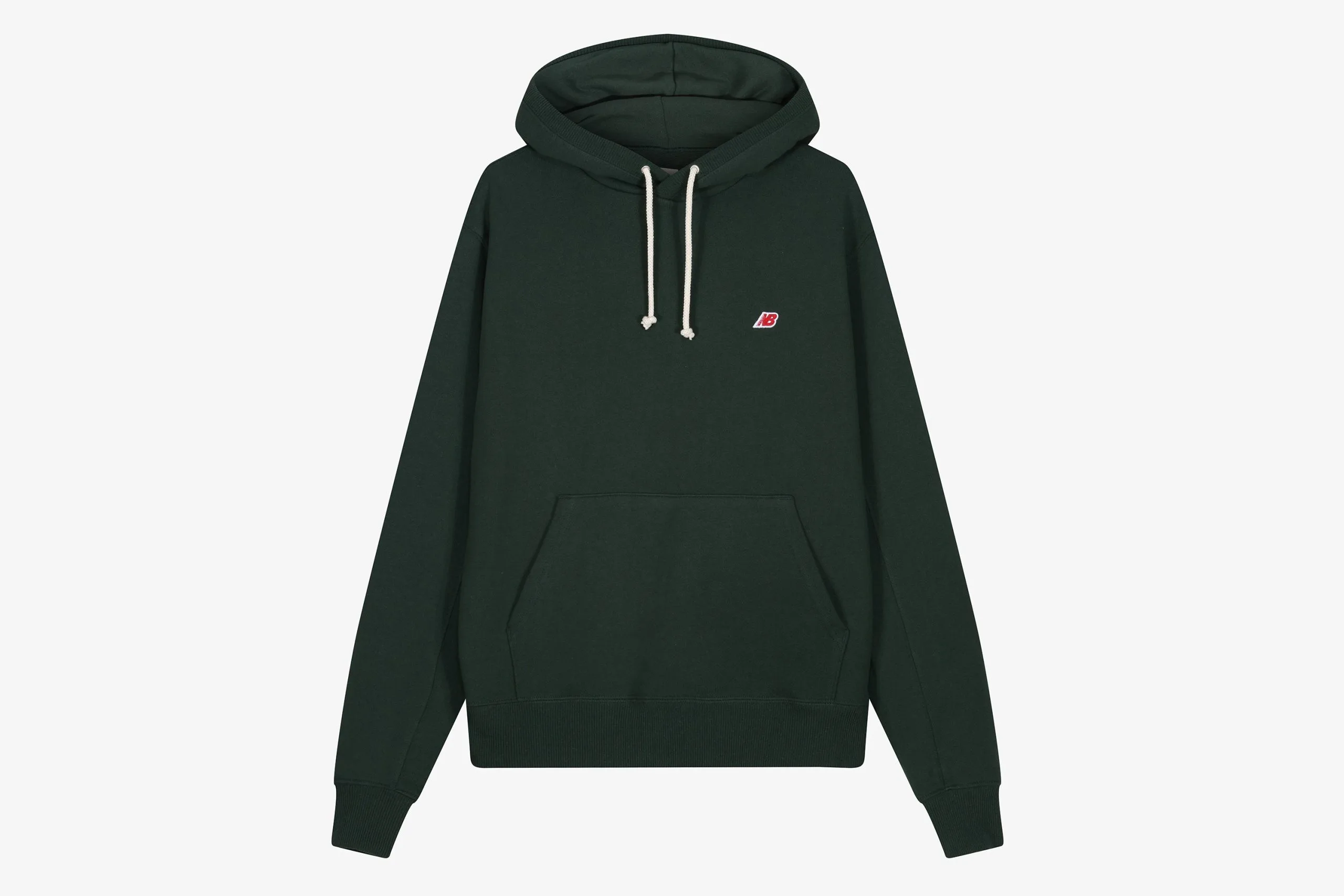 Here we have a uniform staple hoodie constructed from 100% cotton in the USA. Featuring a New Balance NB embroidered patch logo on the left-hand side of the chest as well as cuffed sleeves, a kangaroo pocket and some beige-hued adjustable drawcord hood strings.