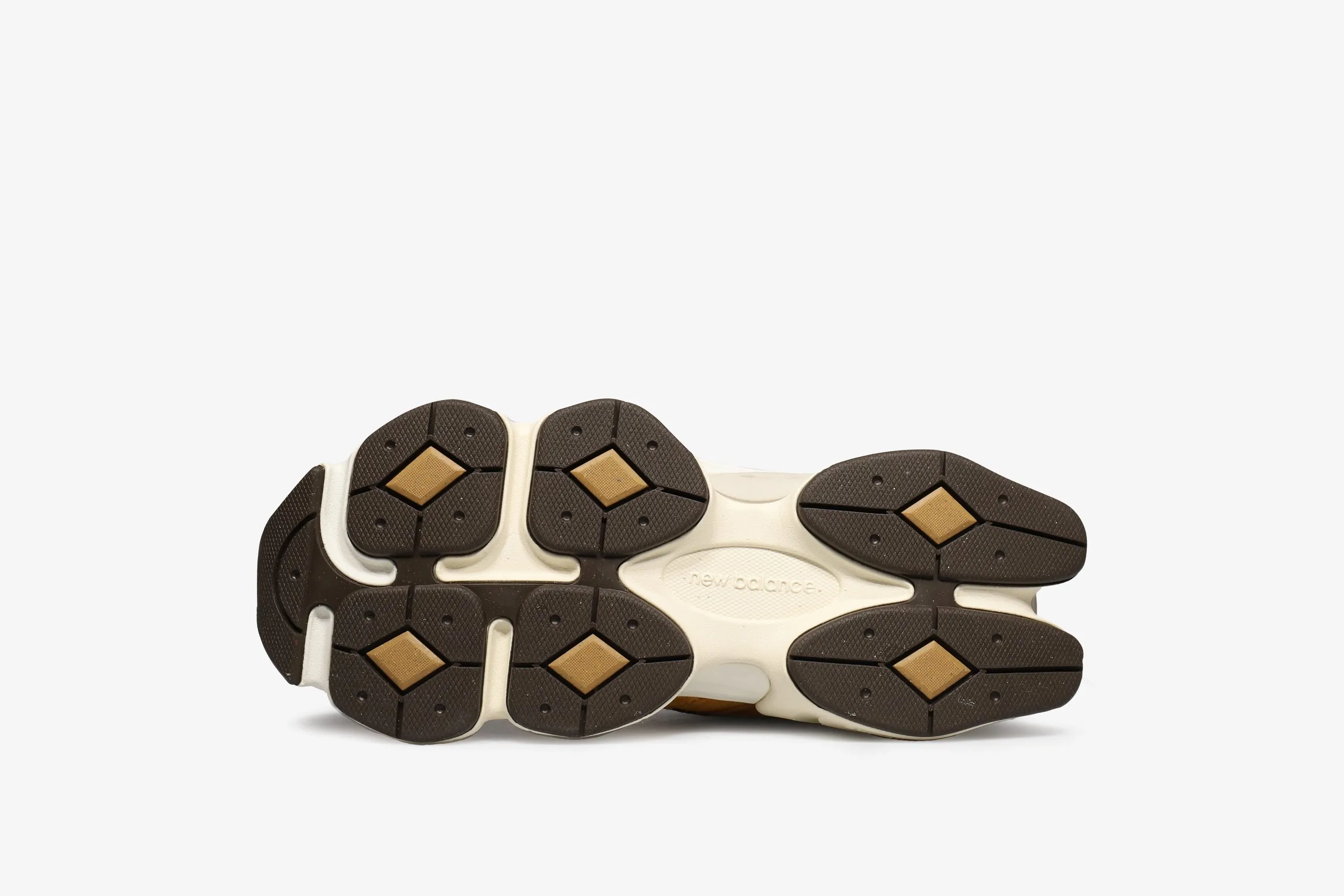 The 90/60 from New Balance returns, this timeĀ in a workwear inspired outfit, orange and brown suede uppers are reminiscent of uniformĀ typically worn by tradesman around the globe .Ā The difference in textures helps block out the technical archive-inspired upper whilst down below New Balance premieres some all-new tooling that makes use of their ABSORB cushioning to give a comfortable feel to proceedings.