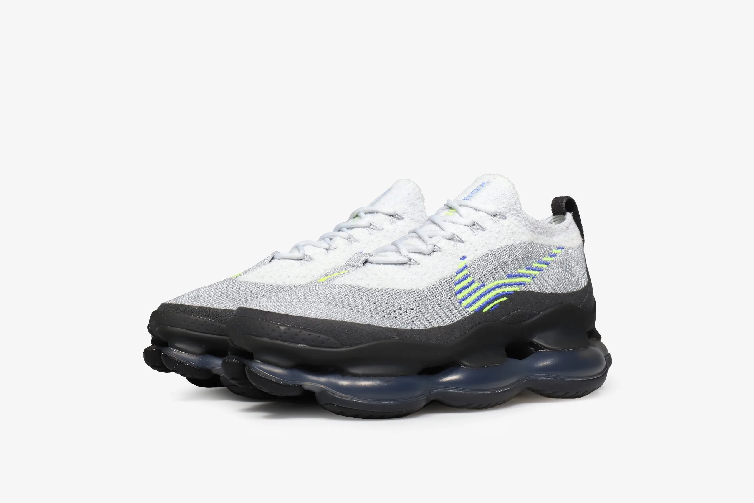Featuring a “point-loaded” Air unit (cushioning that forms to your every step), the Air Max Scorpion Flyknit delivers a futuristic sensation. The expressive upper pairs supersoft chenille-style fabric with incredibly lightweight Flyknit, striking a balance between fashion and sport.