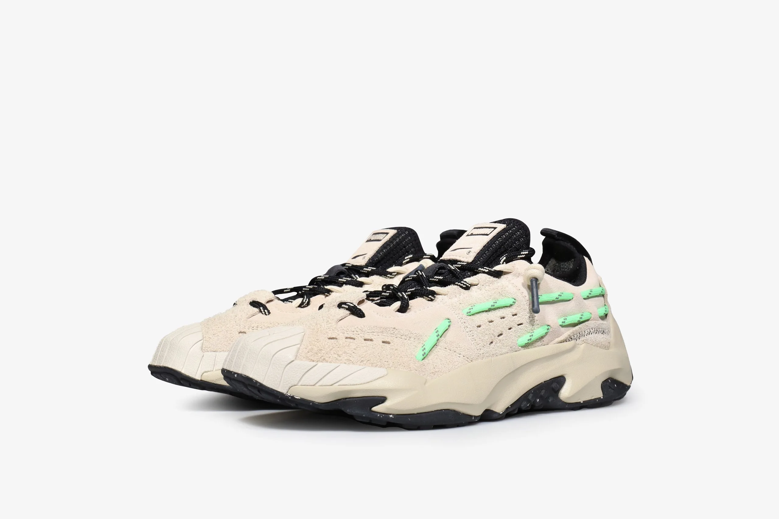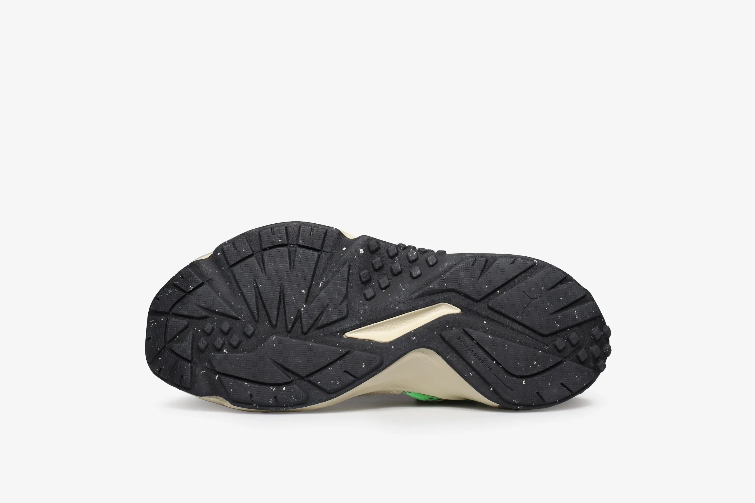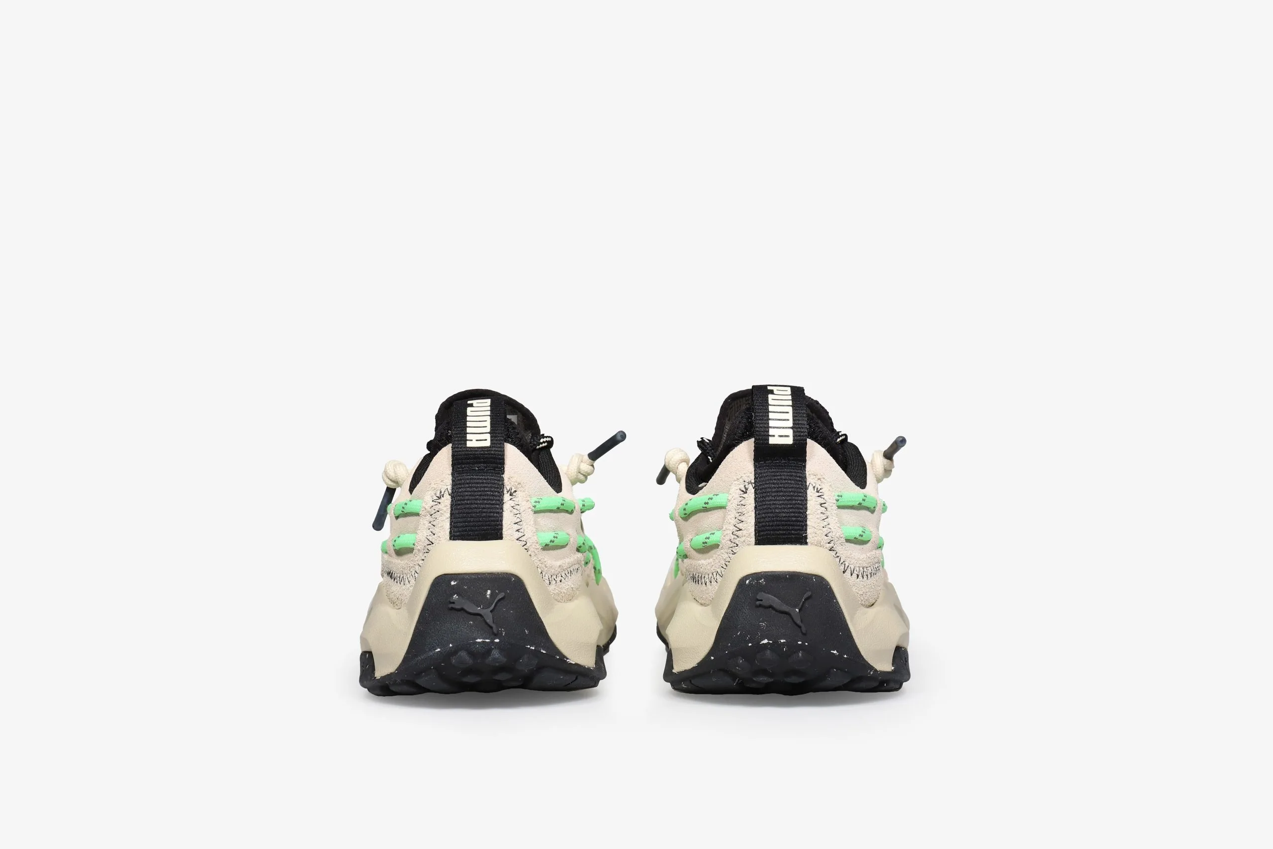 Puma introduce a brand new sneaker design for 2023 – The Plexus. The Puma Plexus’ unique design is inspired by the Mostro from Puma’s archive and it’s incorporation of comfort technology results in a futuristic look and feel that is unlike anything else. The soft textile upper mixes a crafted aesthetic with outdoor ready visual ques by featuring stitched details as well as neon green rope laces that are fed through the side walls to create Puma’s Formstrip. A soft lycra binding sockliner elevates comfort levels for a snug fit that hugs the foot. Puma’s IMEVA midsole cushioning dampens impact and provides total comfort with every step.Â