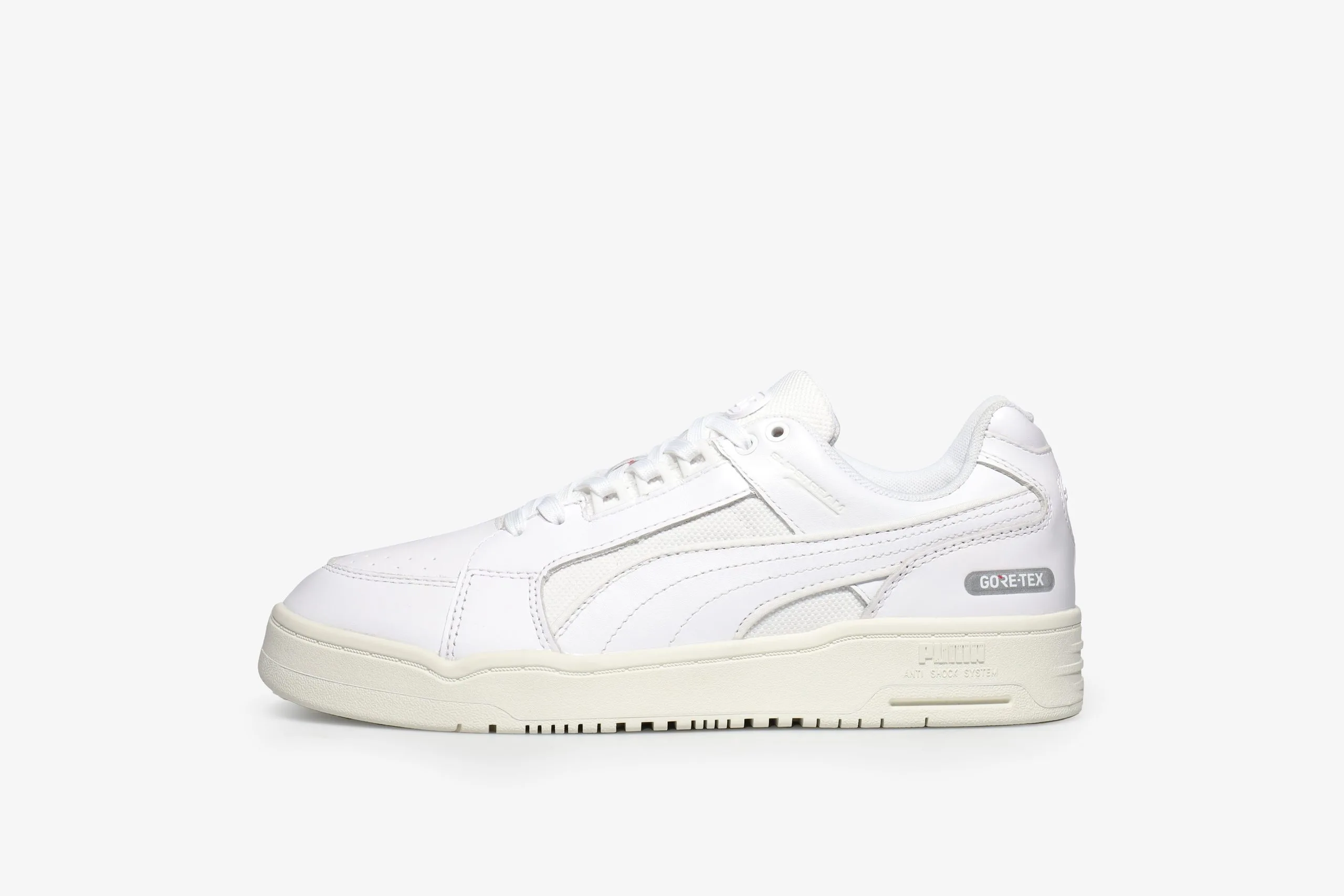 The Slipstream Lo from Puma returns, this time the usual leather upper gets swapped out for a GORE-TEX® lined leather for an extra weather resistant option of the classic silhouette. Minimal branding adds to this pair’s stripped back look with the form strip almost blending in with the upper. Below foot the Slipstream’s anti shock system in the sole unit paired with a SOFTFOAM+ insole ensures a smooth ride every time.Â