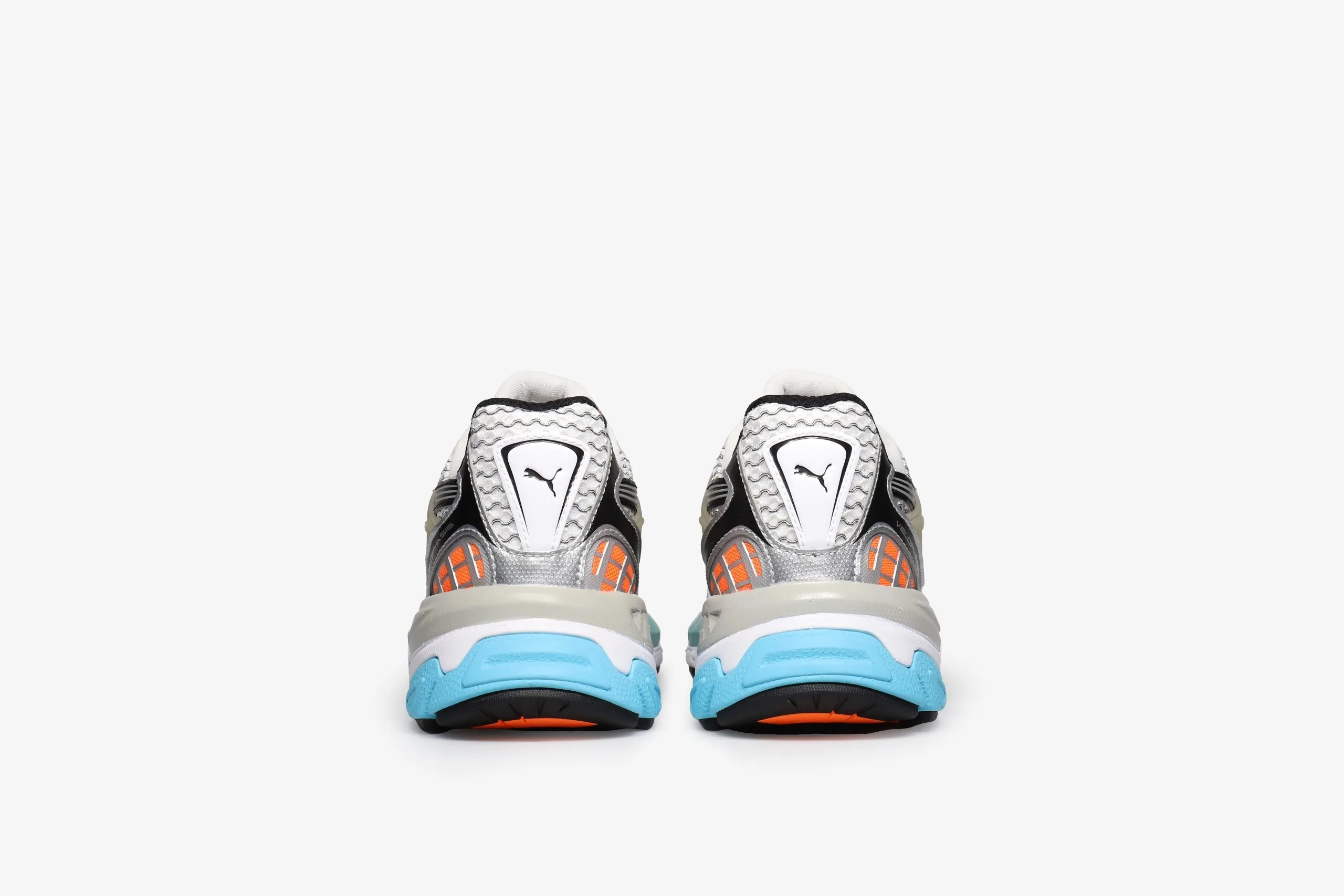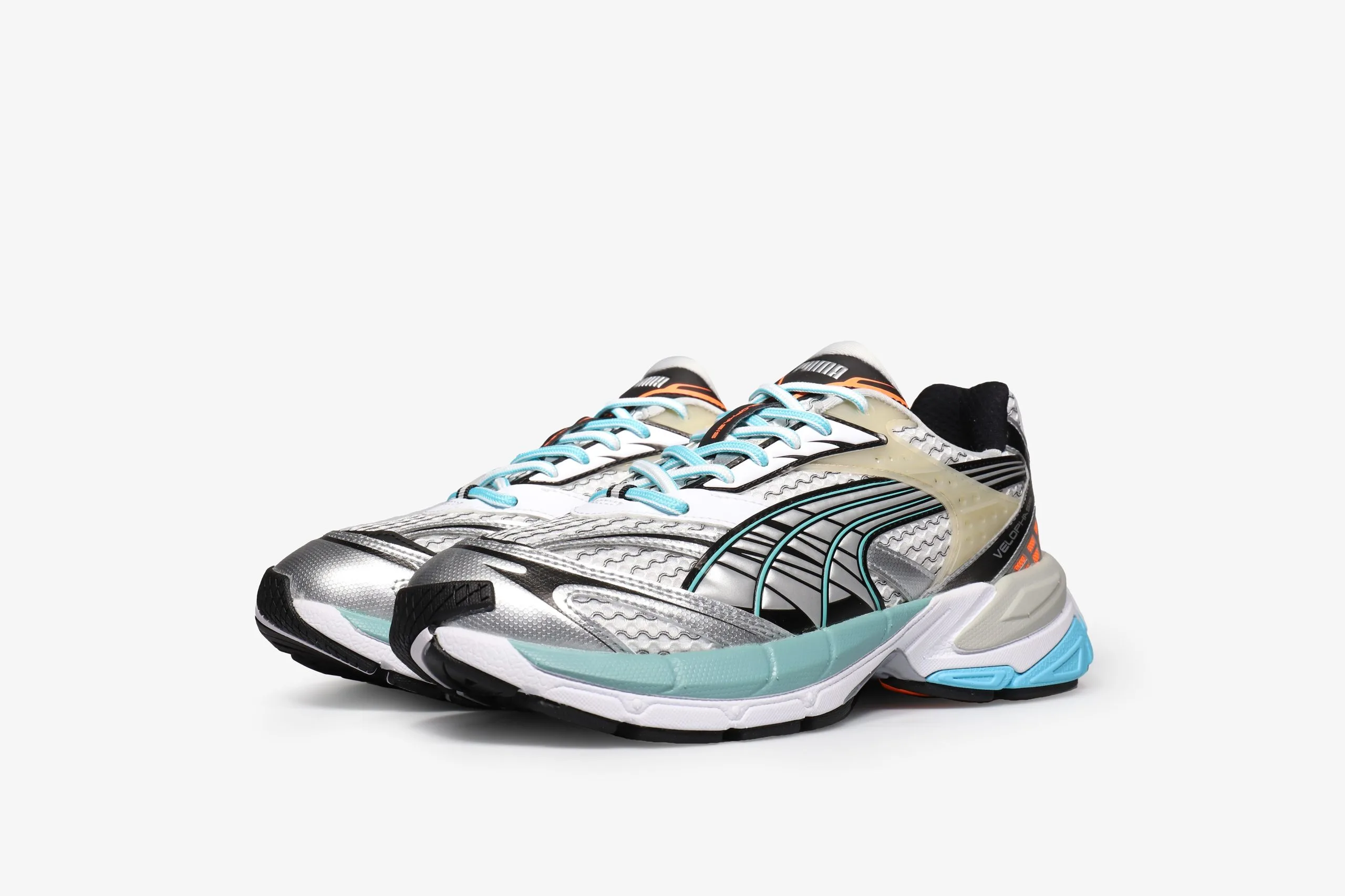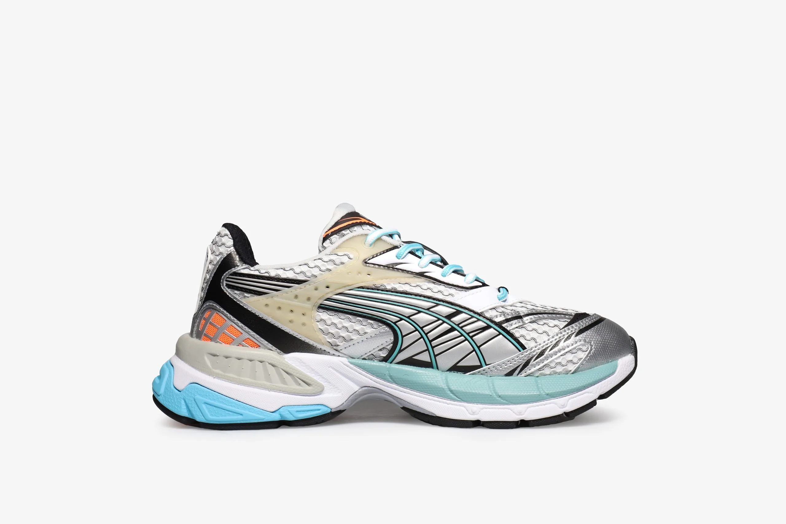 The Velophasis Phased features a Y2K inspired chunky design with the upper built using layer upon layer to create a dynamic look that is ready for action. The wavy mesh body is lightweight and breathable with leather and TPU overlays reinforcing it’s shape and durability. Below a large cushioned sole unit dampens impact and supports your foot resulting in a silky smooth ride. Puma branding at the tongue, insole and heel complete this athletic offering from the big cat. ​
