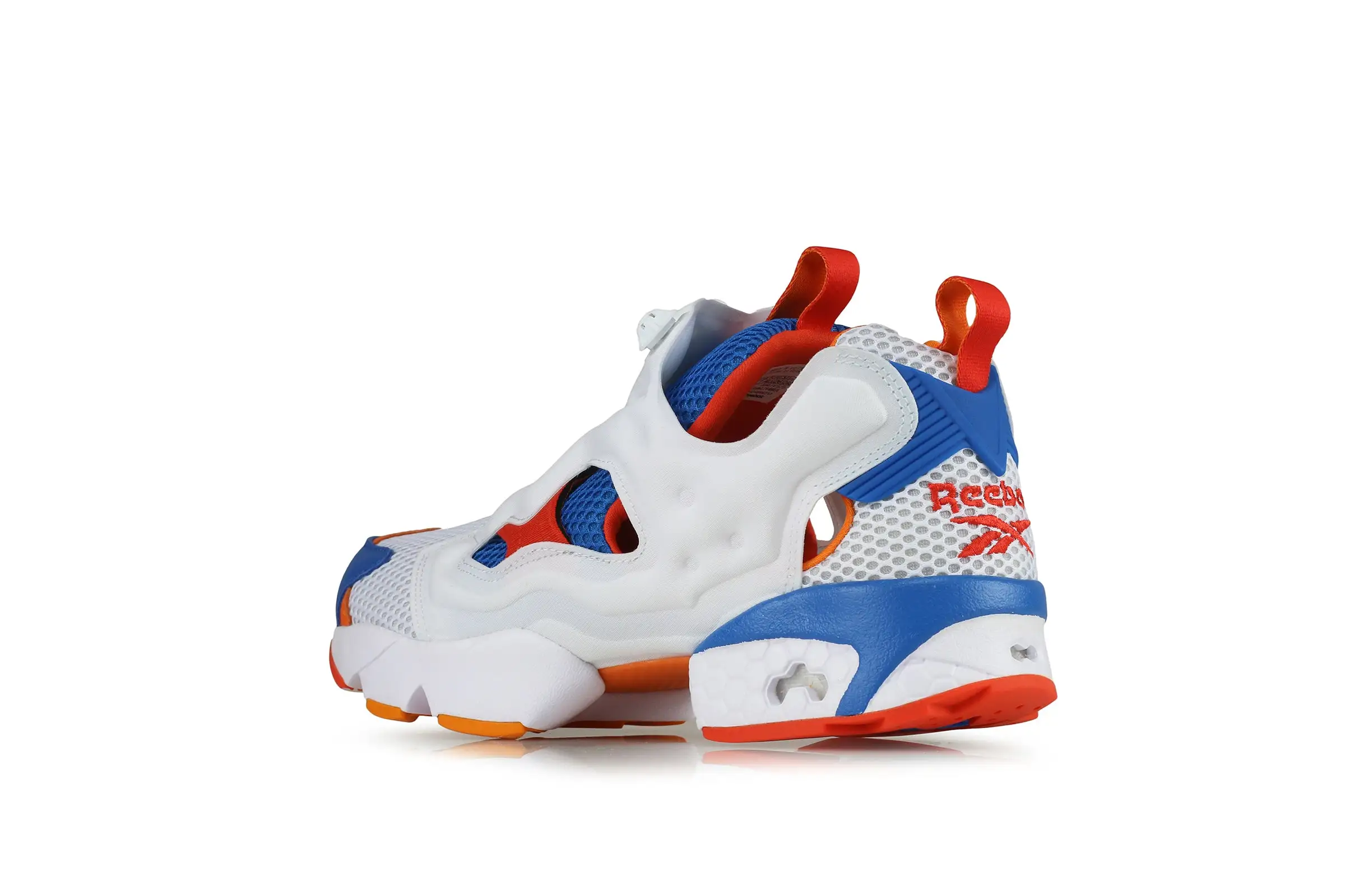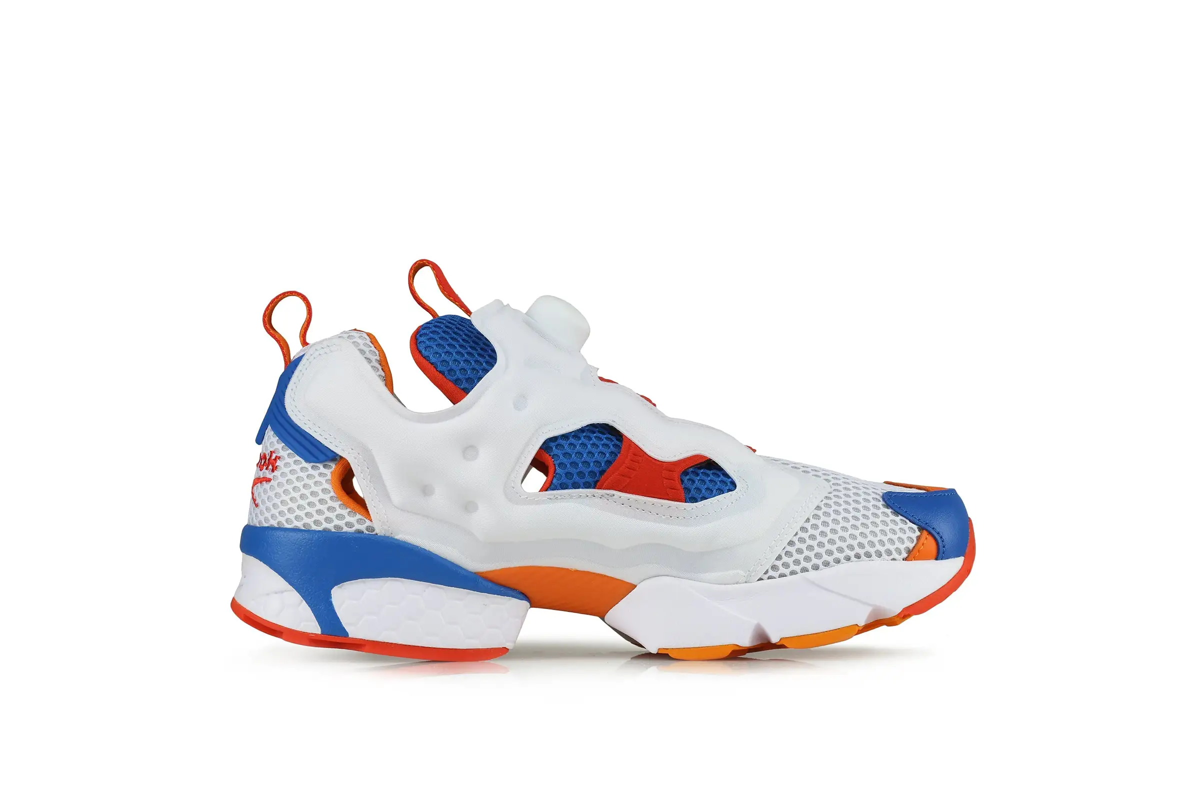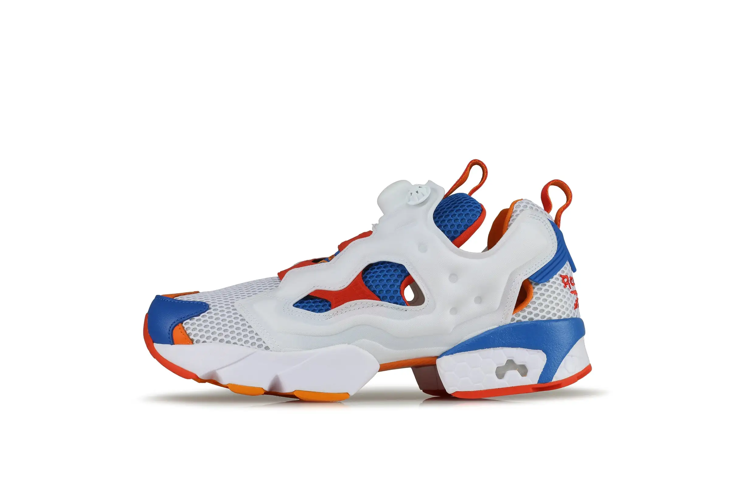 The highly innovative design penned by Steven Smith saw the Instapump Fury harness Reebok’s two main technologies at the time (PUMP & Hexalite) to devasting effect. Couple that with an industrial minimalist design approach, the Instapump Fury forever changed the sneaker landscape. This latest NM edition lands with an allover white mesh popped with bright blue and orange accents.